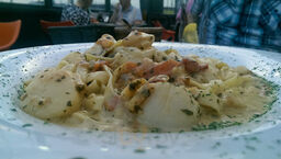 Vraiment pas fameux. Va falloir penser à se calmer sur la sauce, les pâtes nageaient dedans et une quantité d'huile beaucoup trop élevée, c'était juste pas bon. Le tiramisu était pas bon non plus avec au dessus une tonne de coulis au chocolat, c'est pas de la vraie cuisine Italienne. En plus de ça l